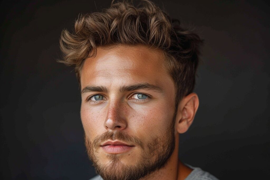 - Le side part dégradé : cette coiffure intemporelle consiste en une raie sur le côté et des cheveux légèrement relevés sur le dessus, avec un dégradé subtil sur les côtés pour accentuer la forme du visage.
