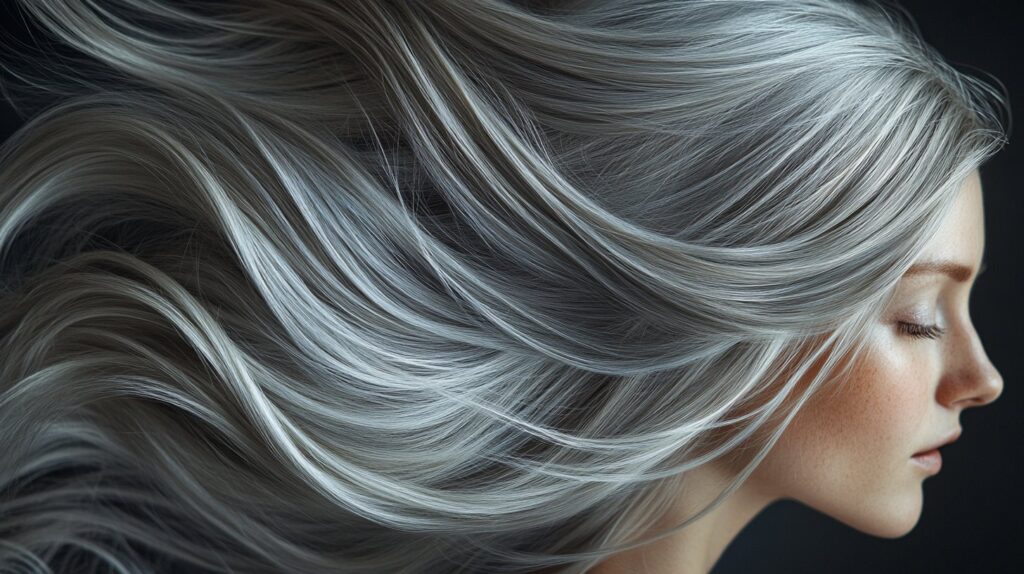 Autre raison non négligeable : le brun cendré est parfait pour dissimuler les cheveux blancs. Grâce à ses reflets grisâtres, il permet de camoufler facilement ces indésirables mèches blanches sans nécessiter des retouches fréquentes.